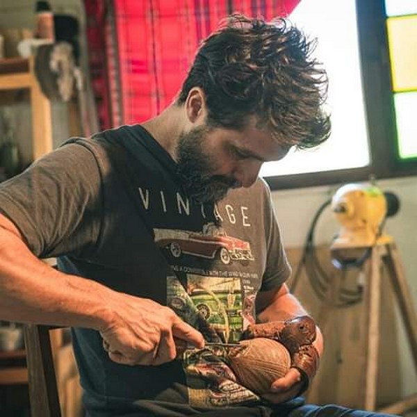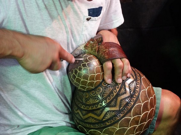 Desde hace unos 30 años, realiza tallados en calabazas, creando piezas únicas desde sus mates hasta lámparas, cajas, yerberos y demás objetos artísticos.